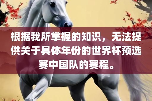 转载请注明来自金炬实业股份有限公司,本文标题:《根据我所掌握的知识,无法提供关于具体年份的世界杯预选赛中国队的赛程?!?/a>