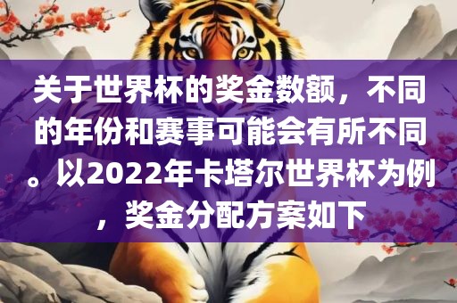 关于世界杯的奖金数额,不同的年份和赛事可能会有所不同。以2022年卡塔尔世界杯为例,奖金分配方案如下