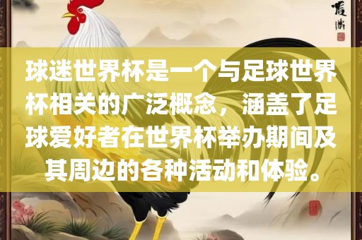 球迷世界杯是一个与足球世界杯相关的广泛概念,涵盖了足球爱好者在世界杯举办期间及其周边的各种活动和体验。