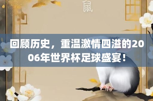 时光荏苒,岁月如梭,转眼间已经过去了十五年的时间,当我们回首那段时光,那段充满激情和热血的日子,心中总会涌现出无限的感慨和回忆,让我们一起回顾历史,重温那场举世瞩目的足球盛宴——2006年世界杯!